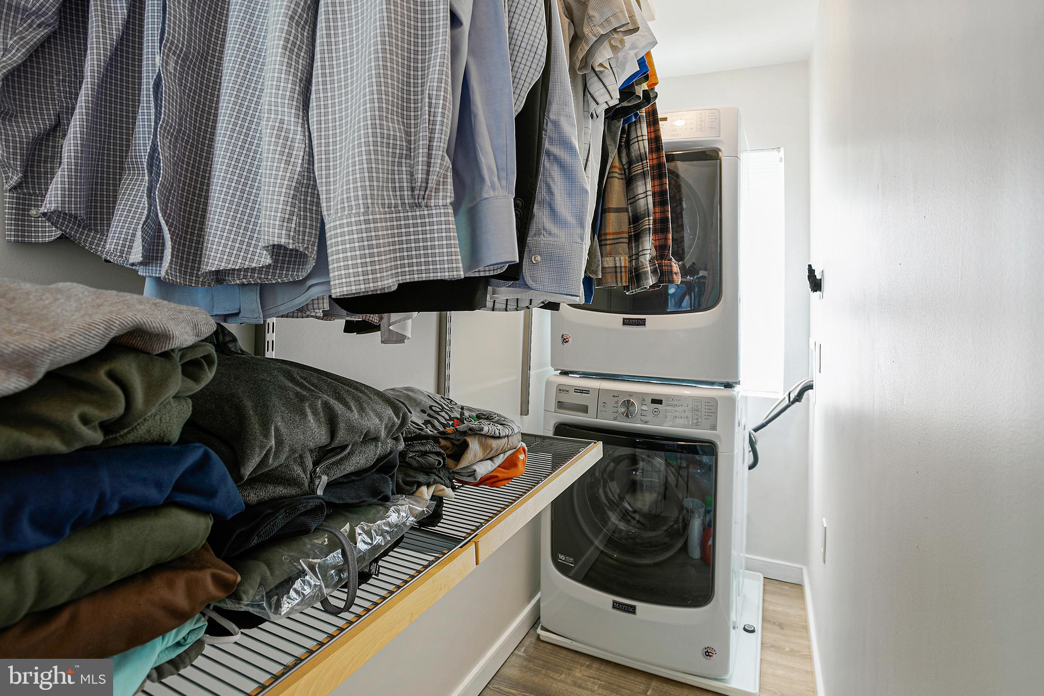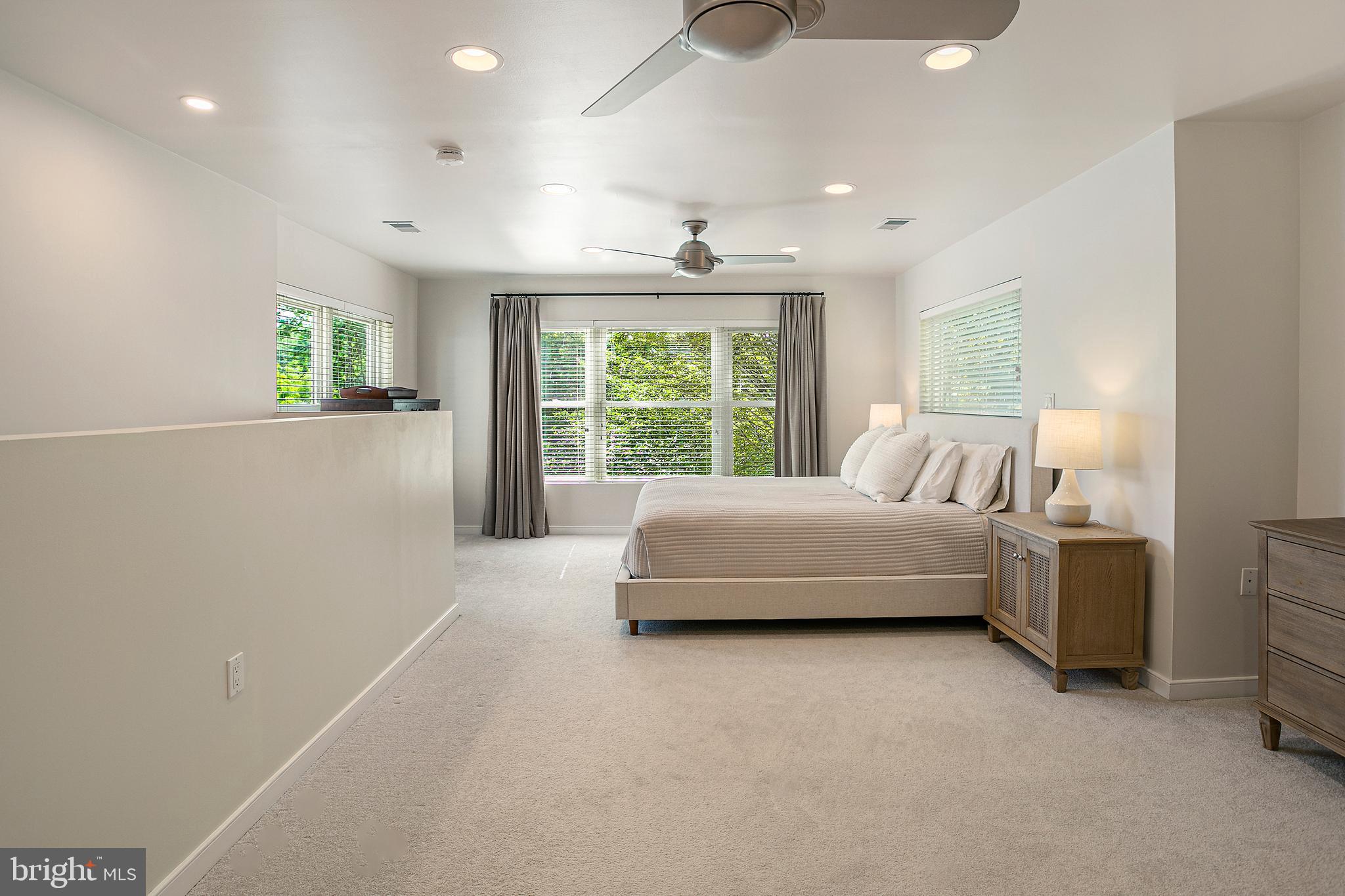The entire upper level is a luxurious primary retreat with its own en suite bathroom featuring dual shower heads. Plus, one of the washer/dryers is conveniently located in the walk-in closet.