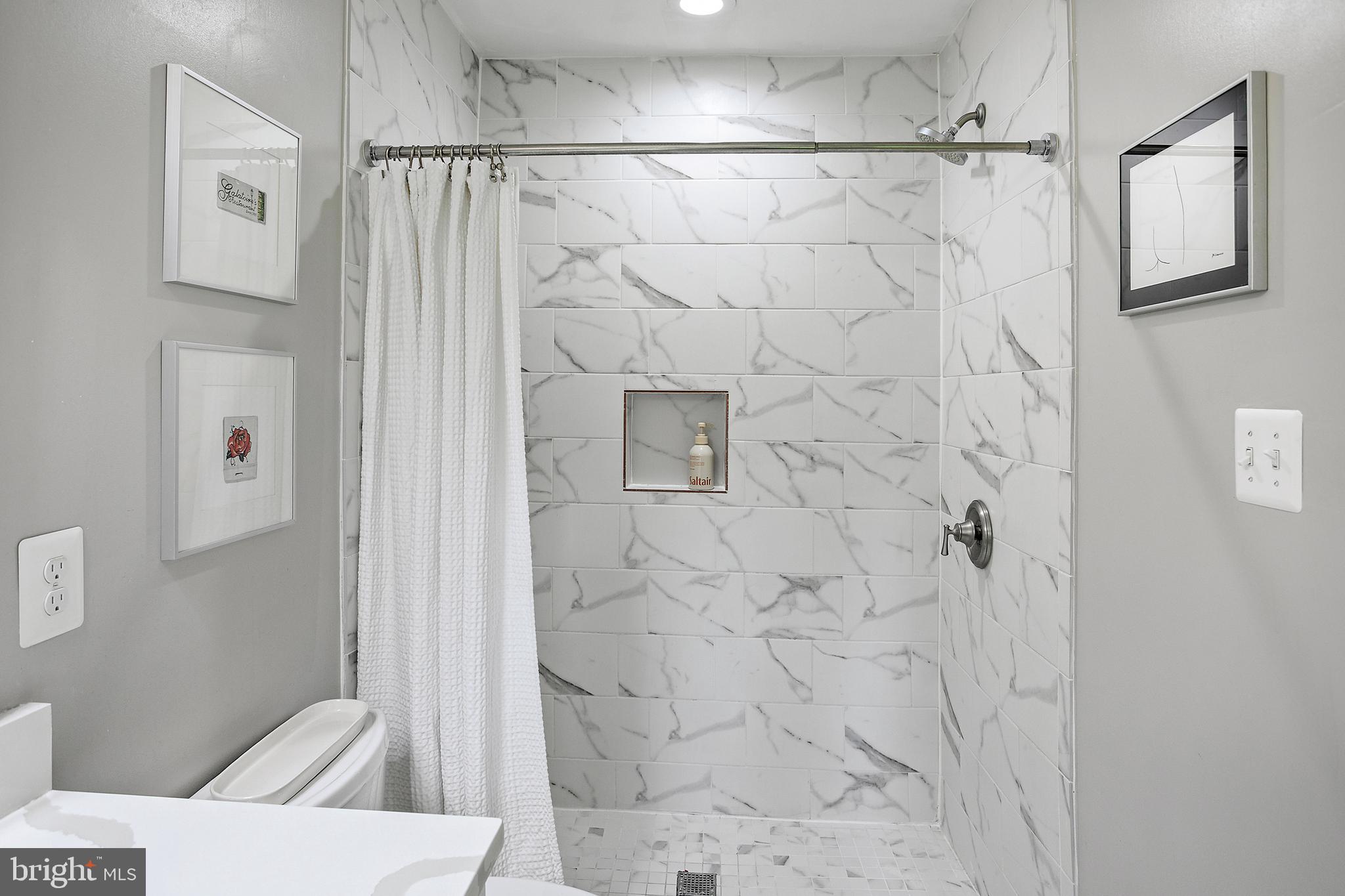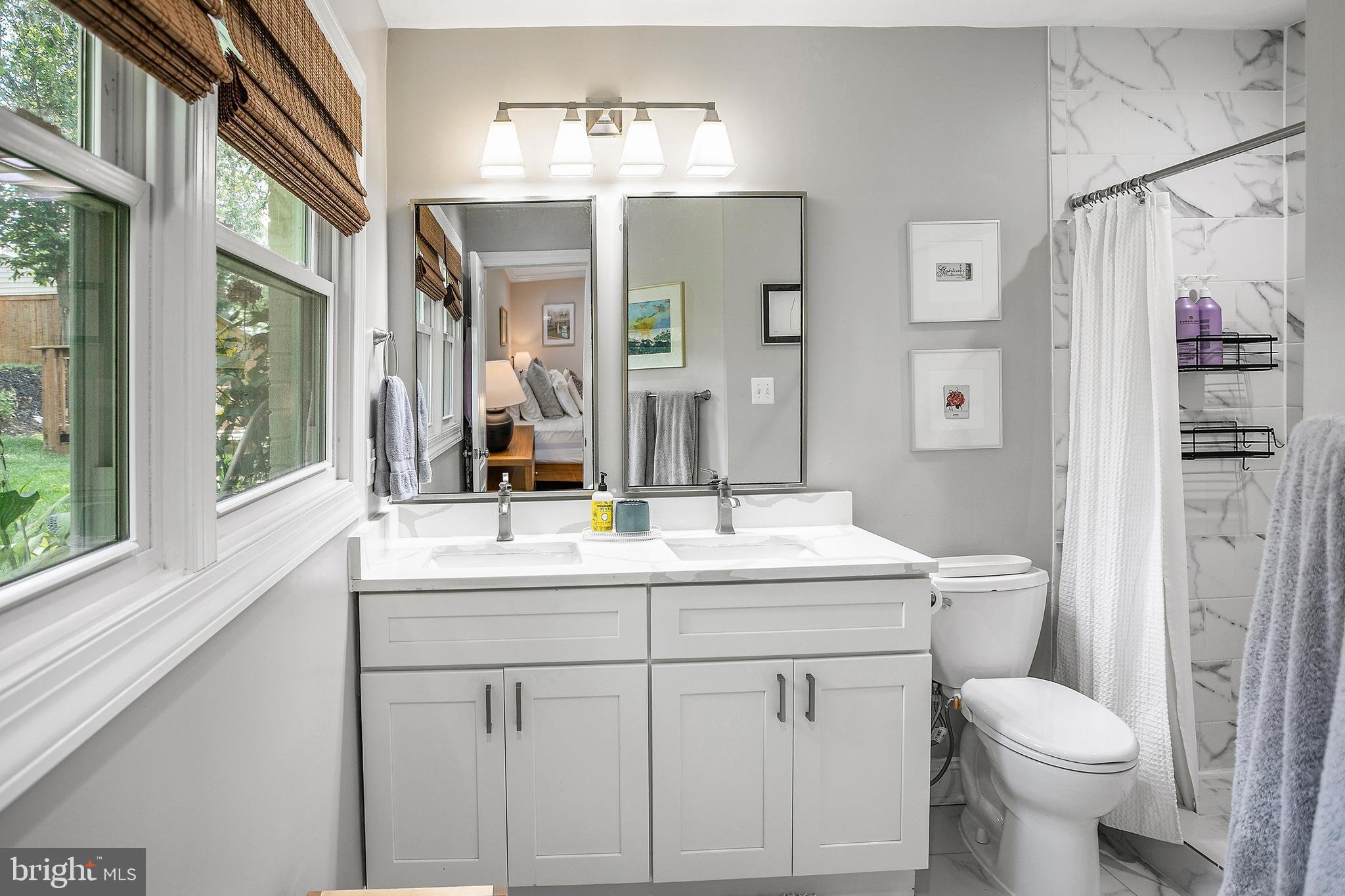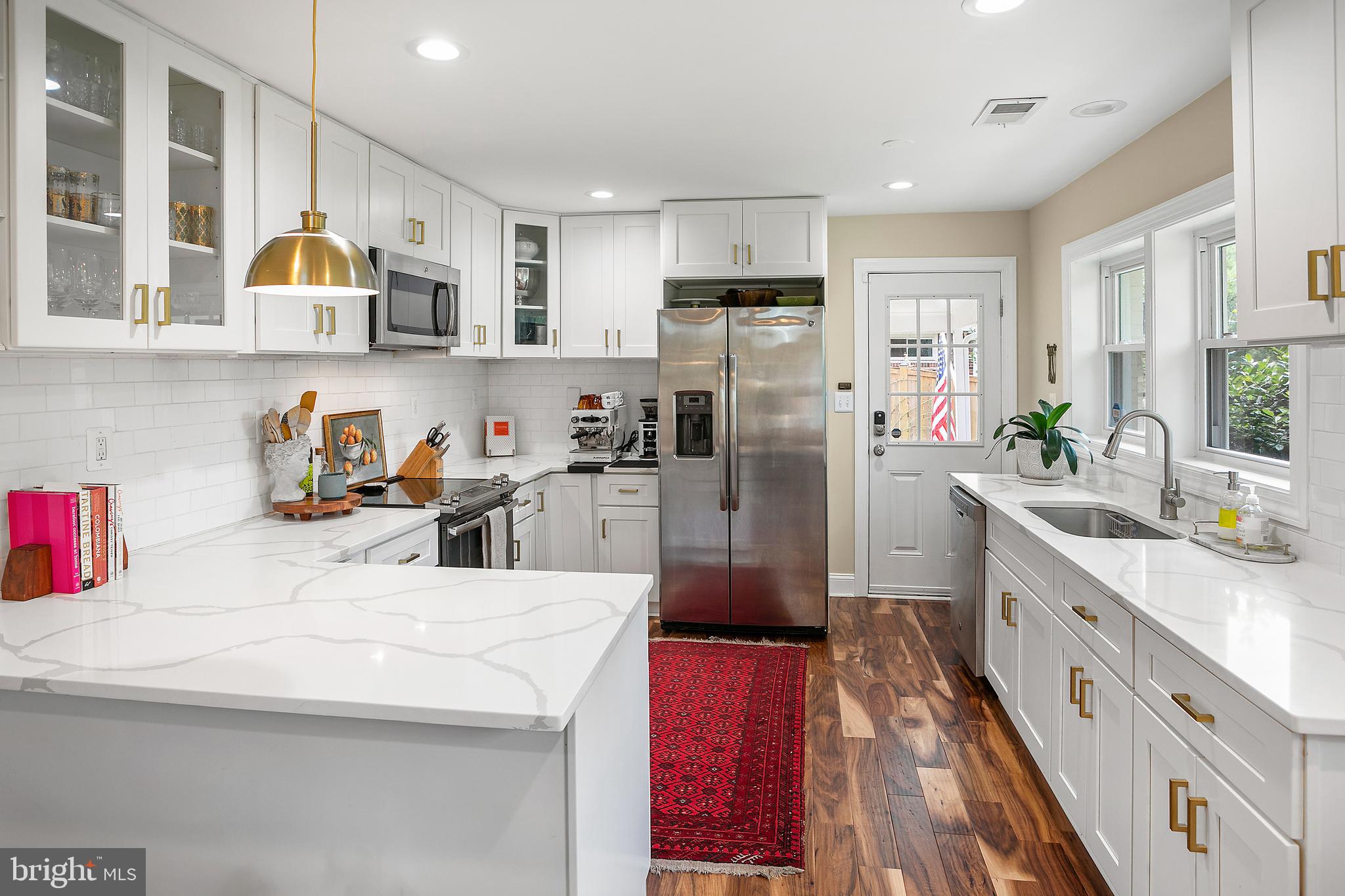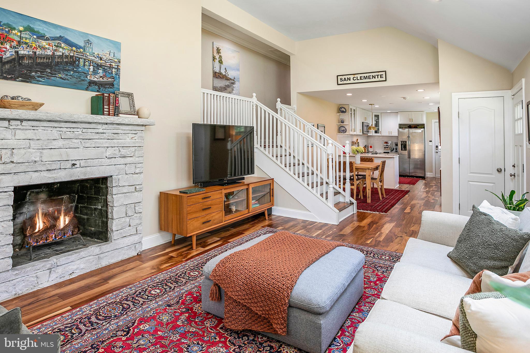 The kitchen shines brightly with its top-tier appliances and sleek quartz countertops, perfect for culinary exploration. Adjacent to it, the spacious living room serves as the home's heart, where you can relax by the cozy fireplace. A few steps up lead to the upper level, hosting three well-appointed bedrooms and two full bathrooms. The primary suite boasts two closets, including a custom walk-in, providing ample storage. The ensuite bathroom features dual sinks and a generous shower.