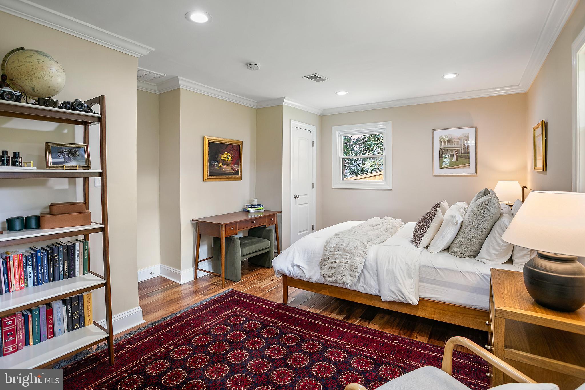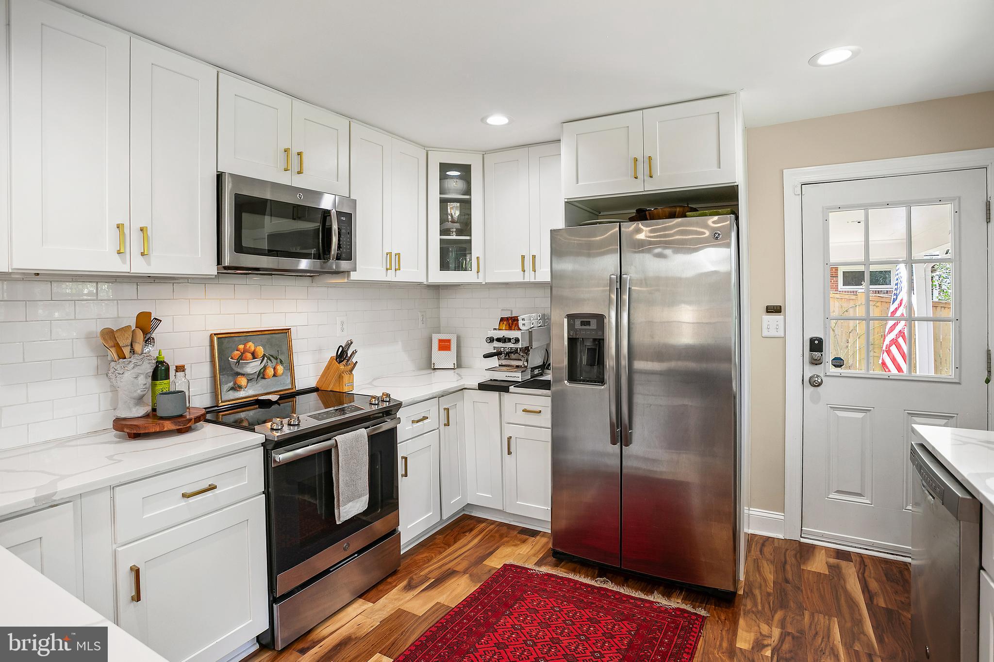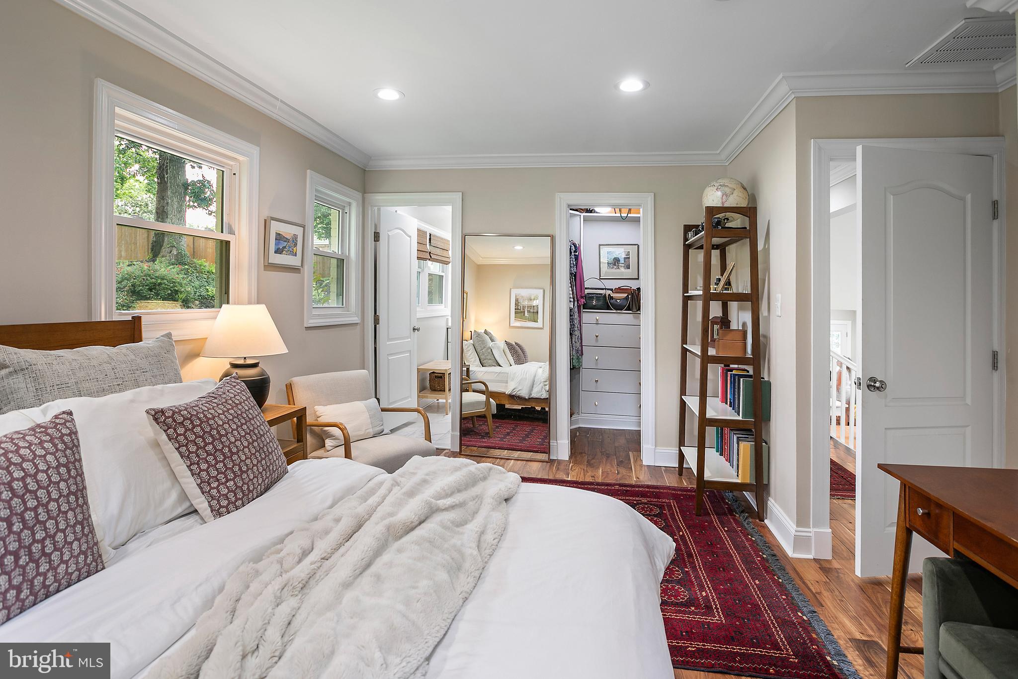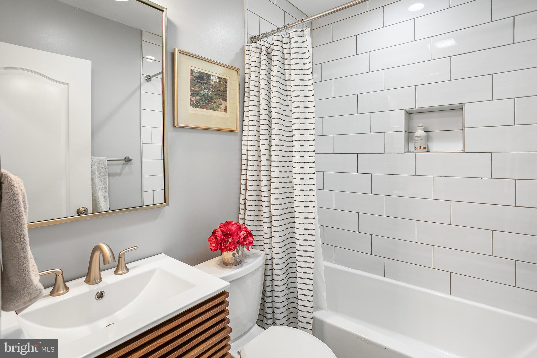 The kitchen shines brightly with its top-tier appliances and sleek quartz countertops, perfect for culinary exploration. Adjacent to it, the spacious living room serves as the home's heart, where you can relax by the cozy fireplace. A few steps up lead to the upper level, hosting three well-appointed bedrooms and two full bathrooms. The primary suite boasts two closets, including a custom walk-in, providing ample storage. The ensuite bathroom features dual sinks and a generous shower.