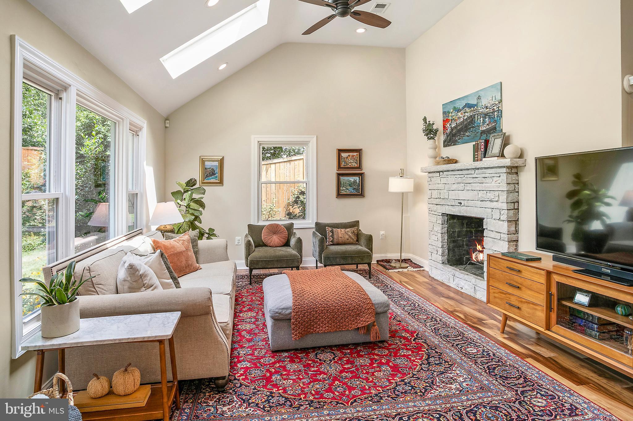 Recent updates such as new ductwork, roofing, and skylights (2021), along with an irrigation system, French drain, and mature landscaping, enhance the home's appeal.