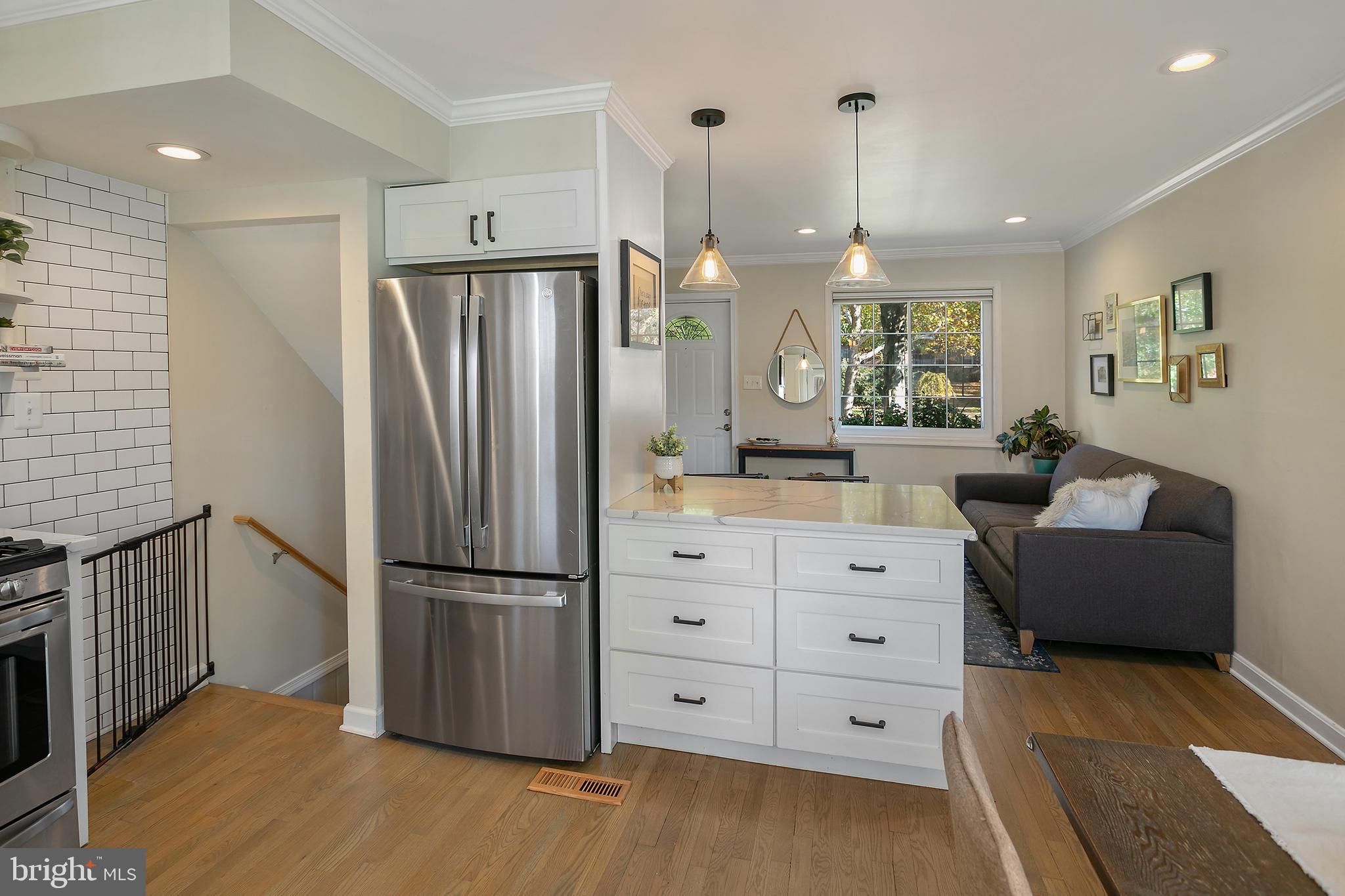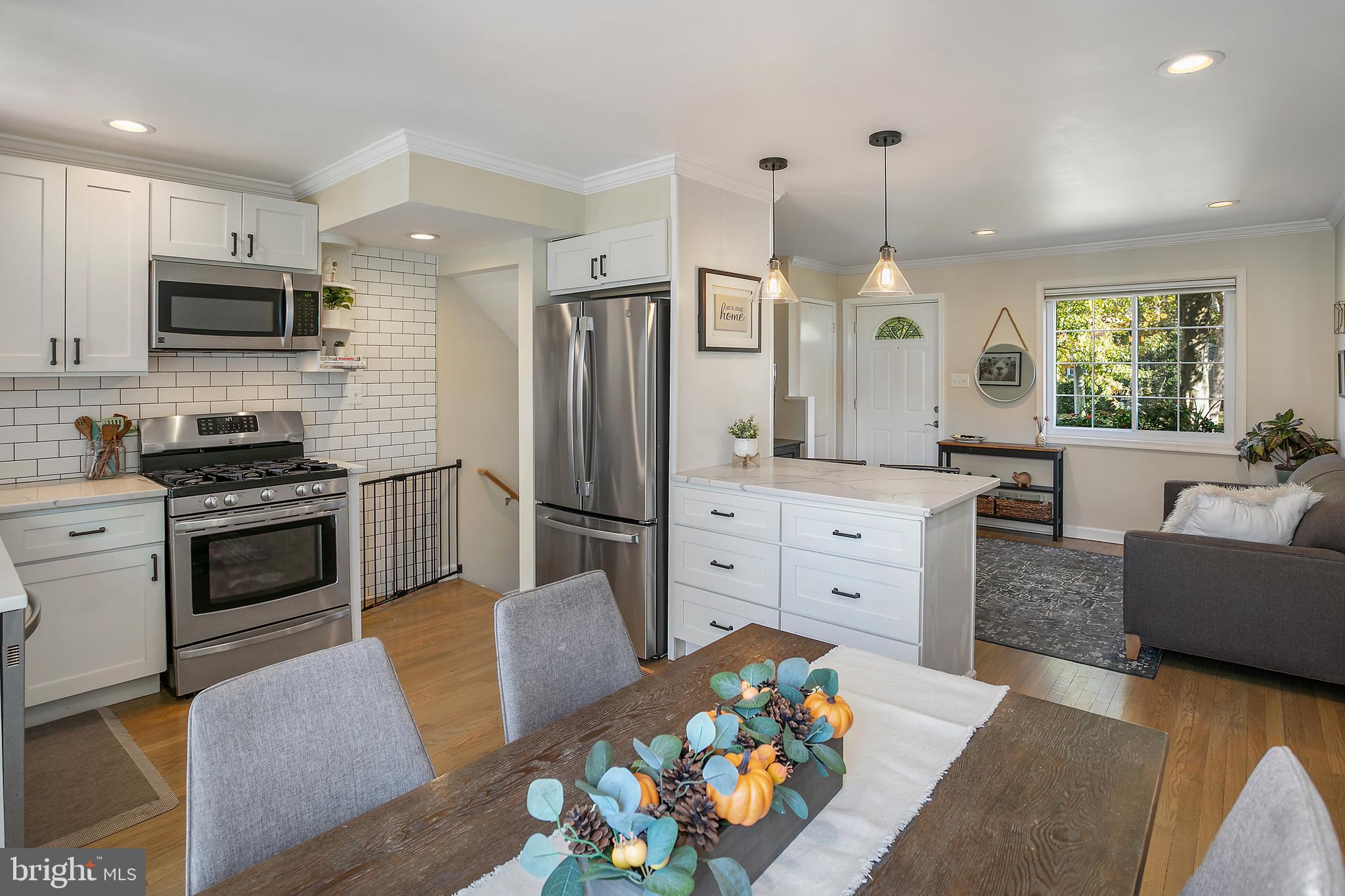 The spacious, inviting interior welcomes you as you step inside. The living area flows seamlessly into an oversized, open kitchen, creating a perfect space for entertaining guests or enjoying quality time with loved ones. The kitchen has been thoughtfully updated with stainless steel appliances, quartz countertops, and a charming shiplap accent on the island. The gas cooktop adds a touch of luxury and convenience for the discerning home chef.