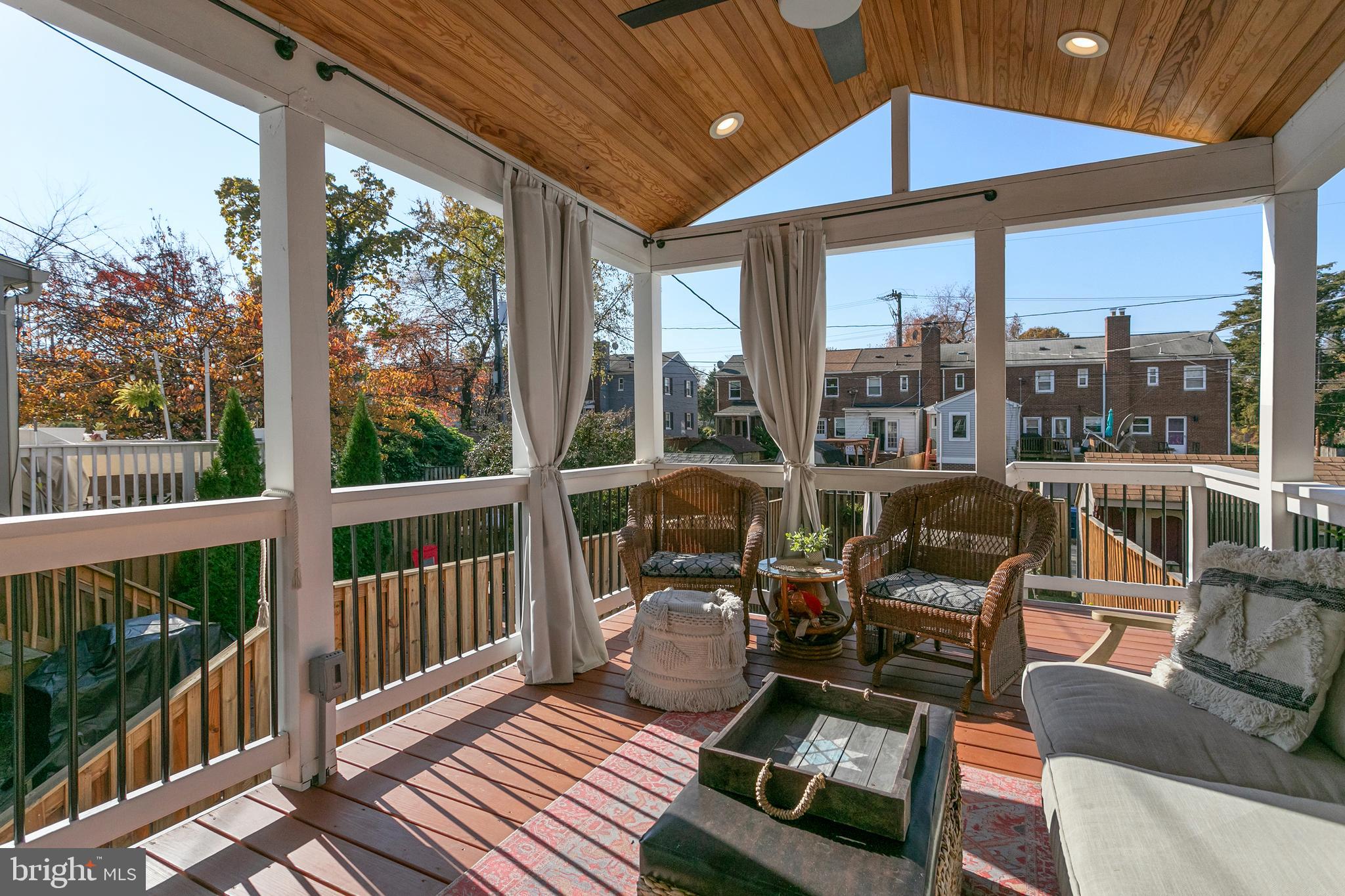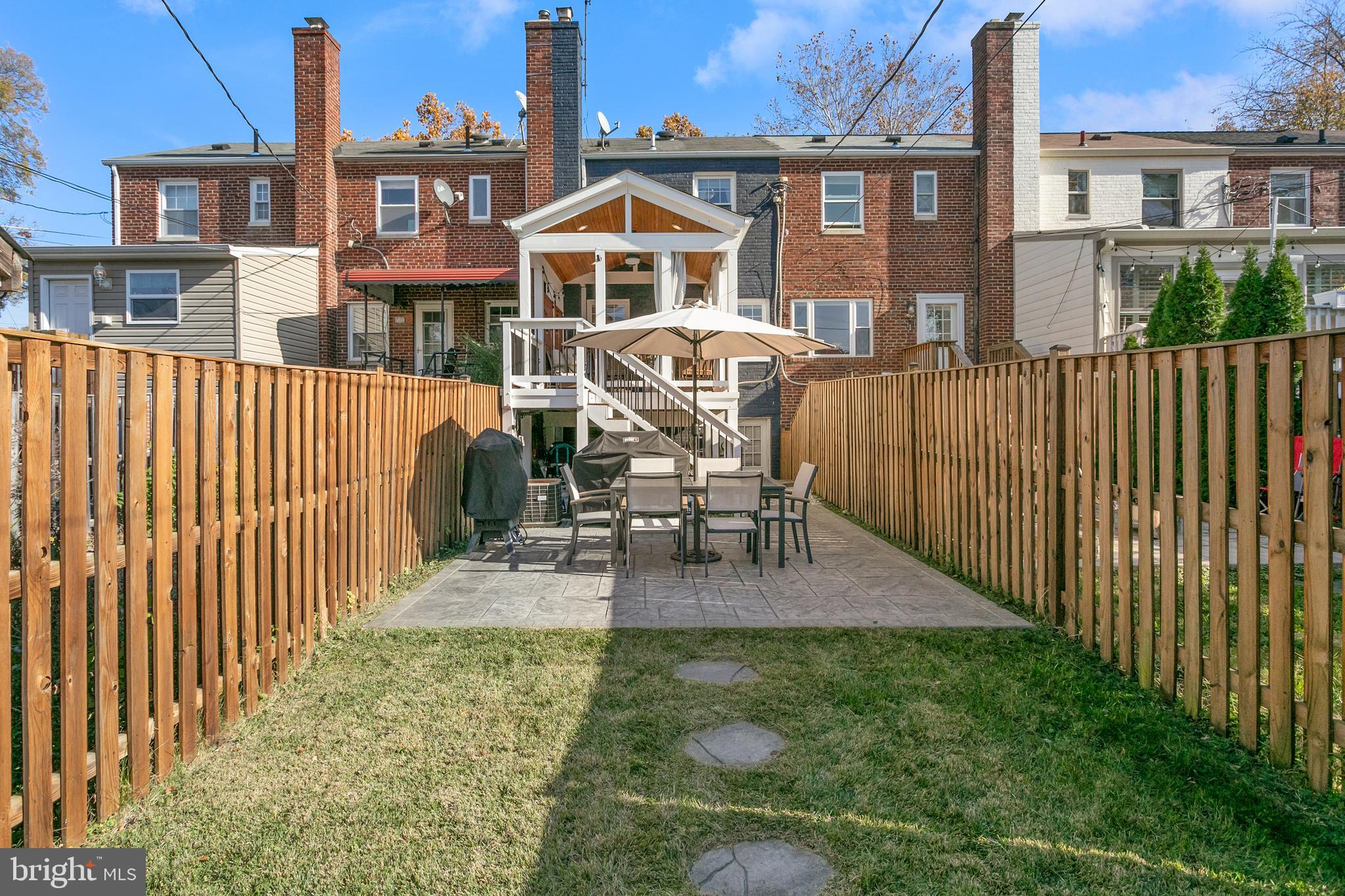 Step outside to the covered rear deck, a true oasis for relaxation and enjoyment. Complete with recessed lighting, a ceiling fan, and privacy curtains, this space is perfect for outdoor entertaining or simply unwinding after a long day. The extra electrical outlets allow for easy outdoor connectivity. In addition, the patio was completed in 2020 with stamped concrete, for easy maintenance.